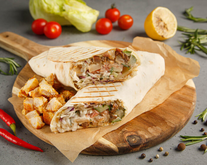 Сочная шаурма с рубленным мясом курицы в сочетании со свежими овощами и фирменным соусом.